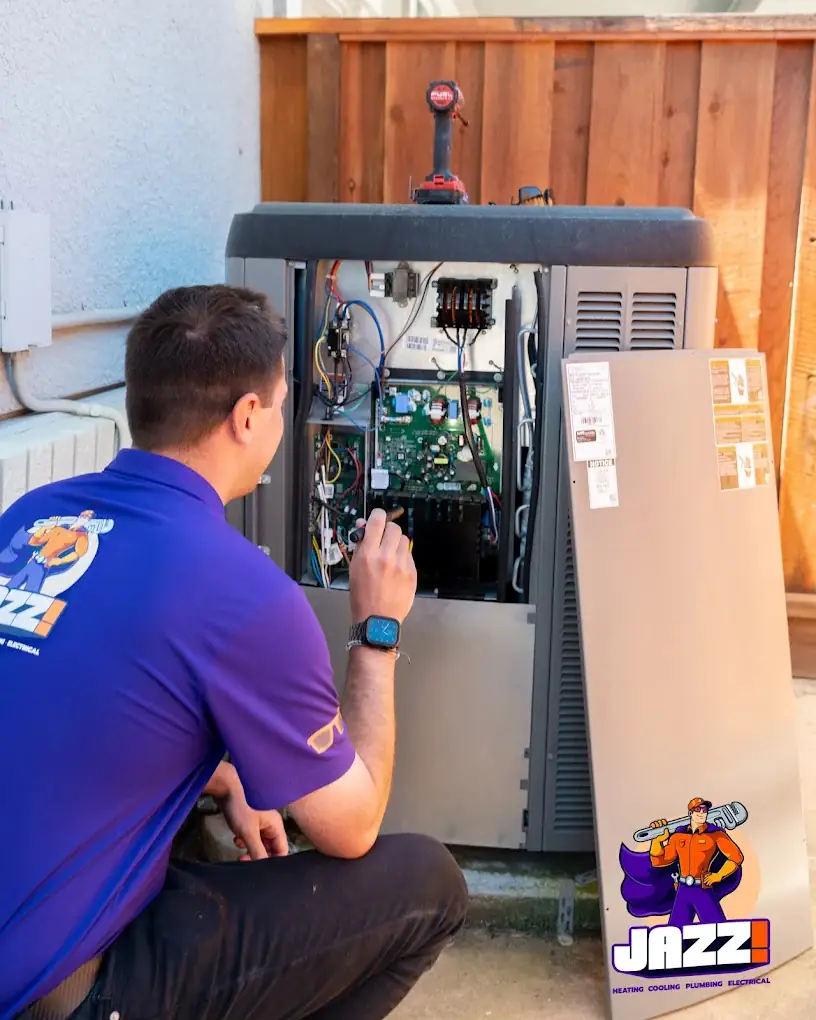 Discover the difference with our Local HVAC & Plumbing Experts You Can Trust. At Jazz, we’re not just technicians; we’re GetJazz Technicians! We’re committed to excellence in every task. Our team stands apart with a foundation of trust and skill, ensuring your home is in the safest hands. With Jazz, you’re choosing a partner who values the safety, efficiency, and comfort of your home as much as you do.